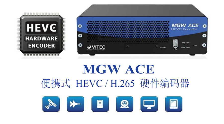 VITEC的MGW Ace 編碼器是全球第一款全硬件HEVC編碼器,整合戰術的視頻、車載航空設備和傳感器的元數據,創建一個符合軍用標準的HEVC IP網絡。工業級設計,低功耗允許高質量的全動態視頻從現場受限的網絡環境向外發送;支持第二路H.264壓縮格式,政府和軍隊在部署新一代HEVC格式的ISR編碼方案的同時,也可以用MGW Ace 繼續支持已有的H264應用環境和IPTV接收設備。