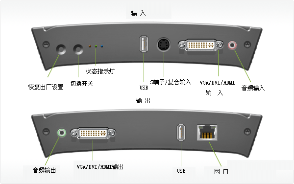 Lecture Recorder x2 可以采集一路來自VGA/DVI/HDMI(注1)接口或攝像機高清視頻(分辨率最高1920x1200),與此同時還可以采集一路來自S-端子/復合接口(P制,N制都支持)的標清視頻和模擬音頻。