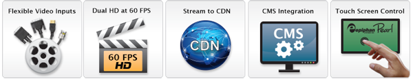 同時捕獲、流和記錄兩個高清音頻/視頻源以每秒60幀,和分辨率2048×2048。專用輸入SDI,HDMI和VGA,Pearl捕捉任何視頻內容你給它,直接或通過一個簡單的適配器。