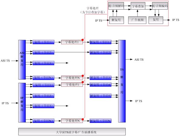 ◆有線電視網(wǎng)絡(luò)數(shù)字化改造后的必選產(chǎn)品 同時在任意多個MPTS流中插播相同或不同的字幕或視頻廣告內(nèi)容