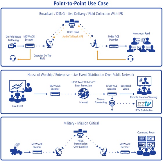 對于點對點應用,當與具有帶寬高效HEVC編解碼器和內置流保護技術,Zixi或SMPTE 2022 Pro-MPEG的VITEC MGW Ace編碼器配合使用時,該解決方案可通過任何網絡提供最佳服務質量,實現無與倫比的視覺效果經驗。
