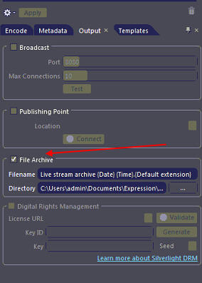 現(xiàn)在選擇Output選項(xiàng)卡并指定輸出的細(xì)節(jié),在我們的示例中視頻是保存到一個(gè)文件中,輸入目錄和文件名。