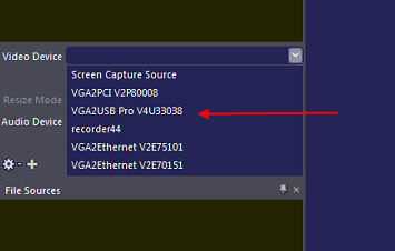 點(diǎn)擊Video Device附近的下箭頭,選擇下拉列表中連接到你電腦的幀采集器。