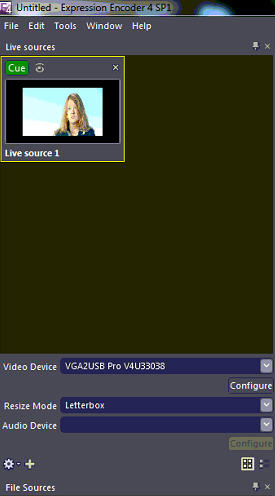連接VGA2USB Pro與視頻源的VGA輸出端口和電腦的USB接口,Microsoft Expression Encoder應(yīng)用程序已經(jīng)安裝完成。確保幀采集器,視頻源和電腦啟動(dòng)。