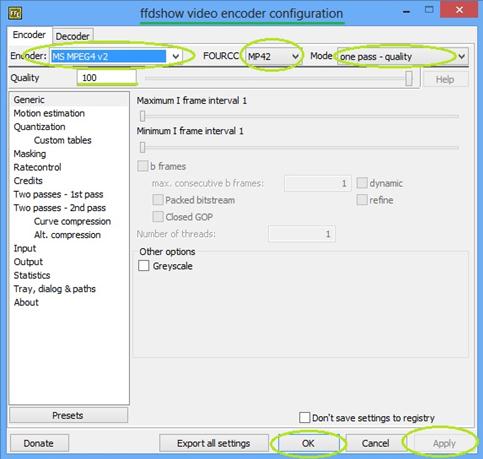 ——選擇編碼器類型MS MPEG4 v2
