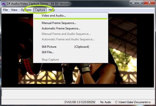 4. 點(diǎn)擊Video Device視頻設(shè)備并選擇DVI2USB 3.0,自動(dòng)啟動(dòng)預(yù)覽模式。