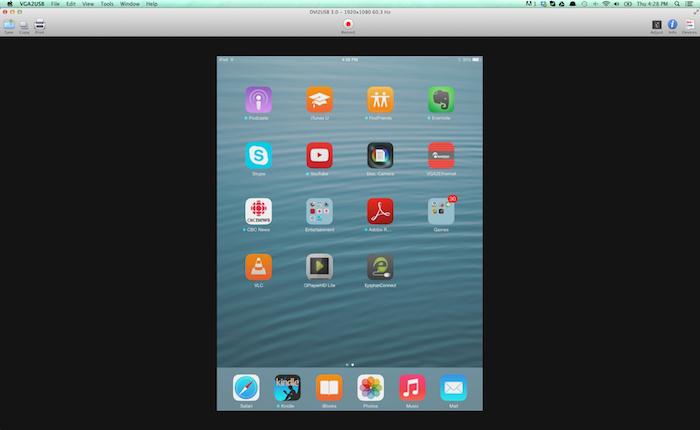 1. 顯示iPad作為你的桌面,分享一個采集工具例如Epiphan Capture Tool或其它第三方應用程序如VLC等工具。