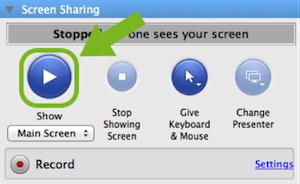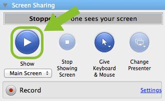 1. 點擊“Show”顯示按鈕開始與您的與會者共享您的屏幕。