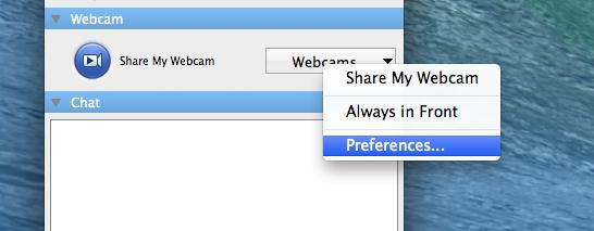 3. 從你GoToMeeting控制面板中攝像頭部分單擊“Webcams” 攝像頭按鈕,并選擇偏好設置。