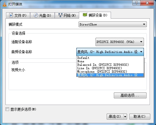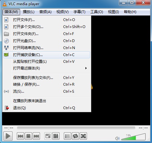 “媒體”菜單下的“打開捕獲設備(C)…”