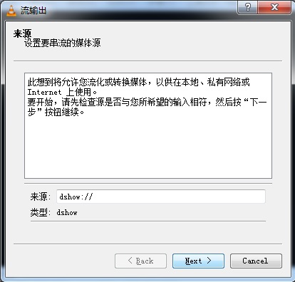 4.點擊“串流”按鈕后轉(zhuǎn)到選擇信號來源頁面,不做修改直接點擊“Next”下一步。