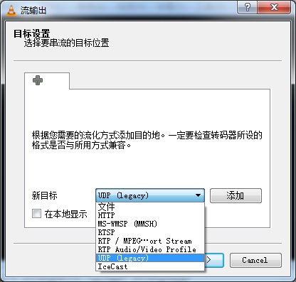 5.選擇新目標為“UDP……”傳輸協(xié)議,并點擊后面的“添加”按鈕