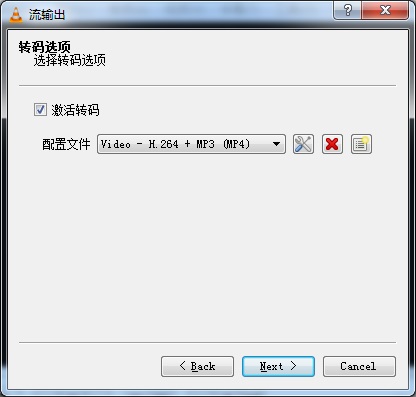 7.在配置文件后下拉三角型選擇轉(zhuǎn)碼的方式,例:“Video - H.264 + MP3 (MP4)”