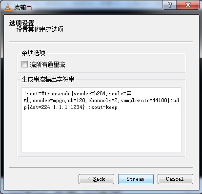 9.完成后點擊“保存”按鈕,出現(xiàn)下圖所示選項設置,點擊“Stream”流按鈕就開始串流輸出了。