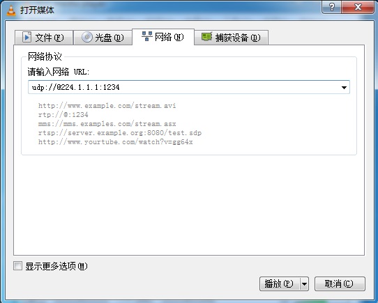 11.在“網(wǎng)絡”選項下的網(wǎng)絡協(xié)議中輸入URL地址,即上述中的UDP組播地址,注意協(xié)議格式