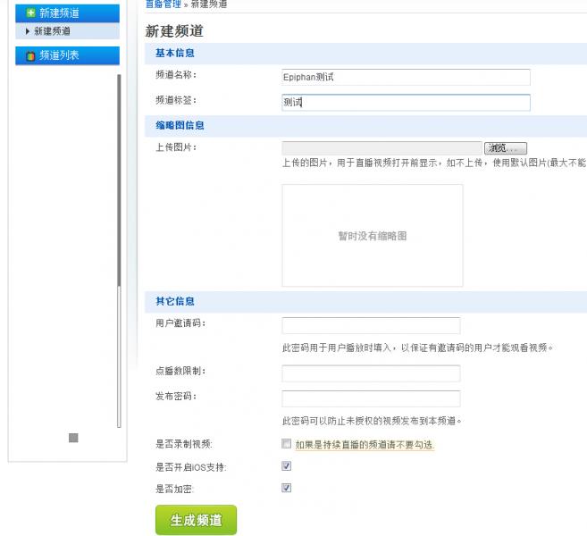 創(chuàng)建直播頻道