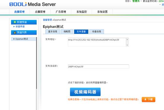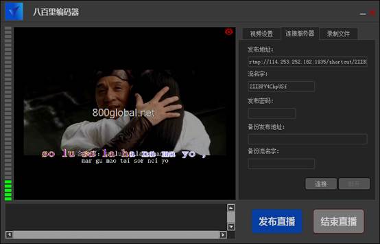 設置發(fā)布地址和流的名稱,點擊發(fā)布直播