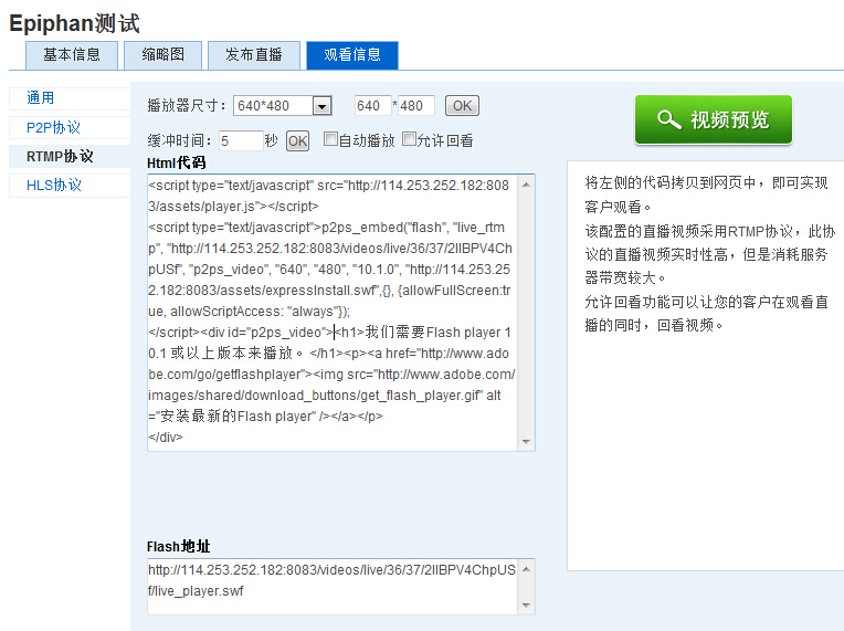 例如:http://114.253.252.182:8083/videos/live/36/37/2IIBPV4ChpUSf/live_player.swf