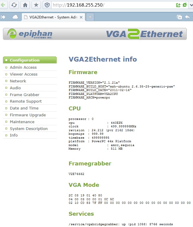至此,遠(yuǎn)程調(diào)用Epiphan VGA2Ethernet設(shè)備已講述完成,由此可見(jiàn),可以把它當(dāng)做一個(gè)VGA/DVI接口的網(wǎng)絡(luò)攝像頭來(lái)進(jìn)行應(yīng)用。