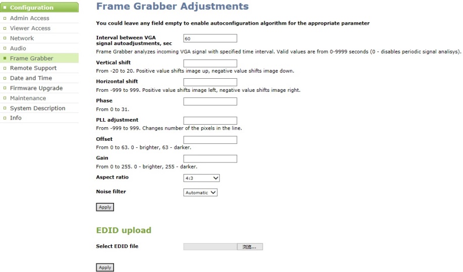 7. 在“Frame Grabber”菜單項(xiàng)中可設(shè)置圖像的偏移、及色彩的增益和寬高比。