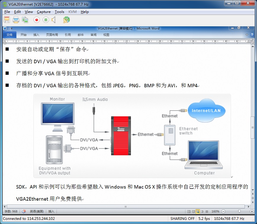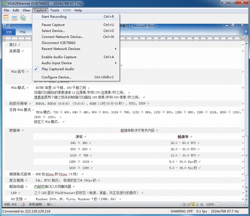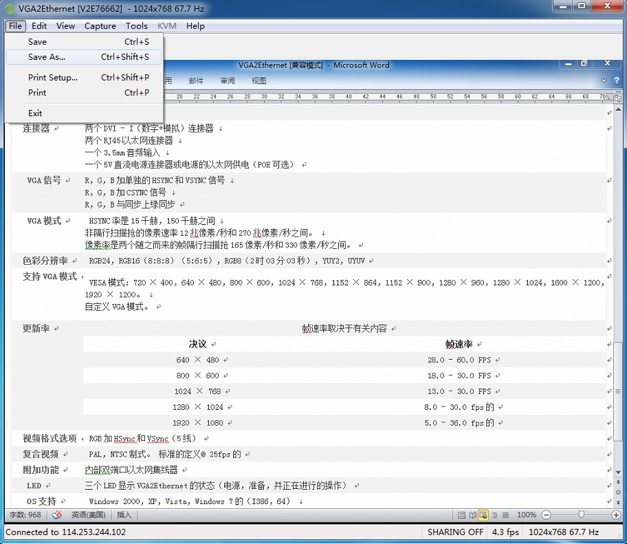 下面介紹如何通過(guò)VGA2Ethernet采集屏幕內(nèi)容并在遠(yuǎn)程客戶端電腦上接收顯示并保存。