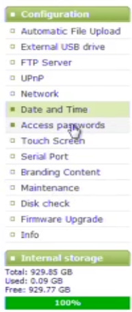 在配置菜單中,我們可以設置記錄完成后自動文件上載到指定的服務器,或是存儲到外部USB設備中,也可以設置系統的  IP和日期時間等,也可以限制讓LCD液晶屏顯示或不顯示某些功能及升級系統等。