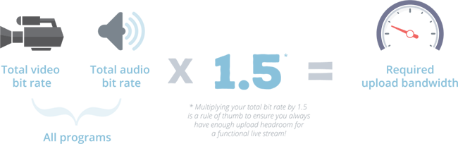 您可以使用以下簡單的公式來估計出網絡所需的流式傳輸上傳帶寬的安全級別: