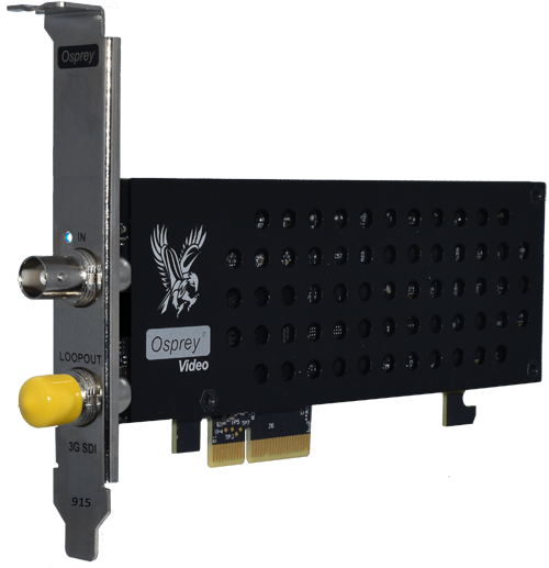 Osprey Raptor(猛禽) 915 具有一個(gè)額定為3Gb/s的SDI輸入。端口適用 SD, HD 和 3G. 所有 9xx Raptor 卡可以采集高達(dá)60fps. SDI 內(nèi)嵌16 音頻通道(8 個(gè)立體聲). 帶1路環(huán)出.