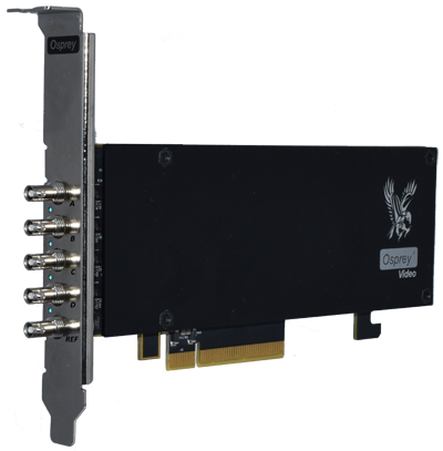 Osprey Raptor 945具有四個3G-Gb / s連接。 端口是雙向的,可以處理SD,HD和3G。 所有9xx Raptor卡可以捕捉和回放高達60fps。 每個SDI輸入支持16個音頻通道(8個立體聲通道),最多可在所有輸入之間共有128個組合音頻通道。 如果卡在輸出模式下使用,則同步鎖定輸入允許幀同步
