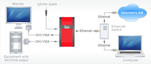 VGA2Ethernet完全與Windows和QuickTime的DirectShow兼容Mac OS X中,這意味著它可以與任何第三方軟件,它允許外部攝像頭作為視頻輸入使用同時使用。另外,VGA2Ethernet軟件,可以免費下載,不僅支持查看和作為一個圖像或視頻VGA信號儲蓄,而且還允許用戶: