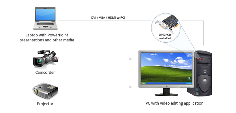 使用VidBlaster創造視頻時,DVI2PCIe圖像采集卡可以輕松地從VGA、DVI或HDMI信號源捕獲視頻輸入。此卡被放置在計算機內部,用于創建播客。所以,你無需依次連接到多個設備的獨立采集卡也可以采集視頻。使用內部采集卡是合理的。該圖像采集卡可以將來自特定來源的視頻內容添加至播客,而不僅僅是來自相機的內容。 DVI2PCIe采集的高分辨率視頻為高質量視頻制作創造了條件。