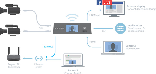 通過支持各種視頻輸入,Pearl-2輕松接入了Anil的多臺攝像頭。 更好的是,Anil可以創建自定義的多機位布局,并使用Pearl-2的實時切換功能在布局之間進行實時流式傳輸。 結果是一個高度動態的Facebook直播 – 這正是Spoke俱樂部想要的。